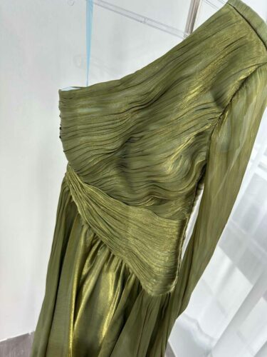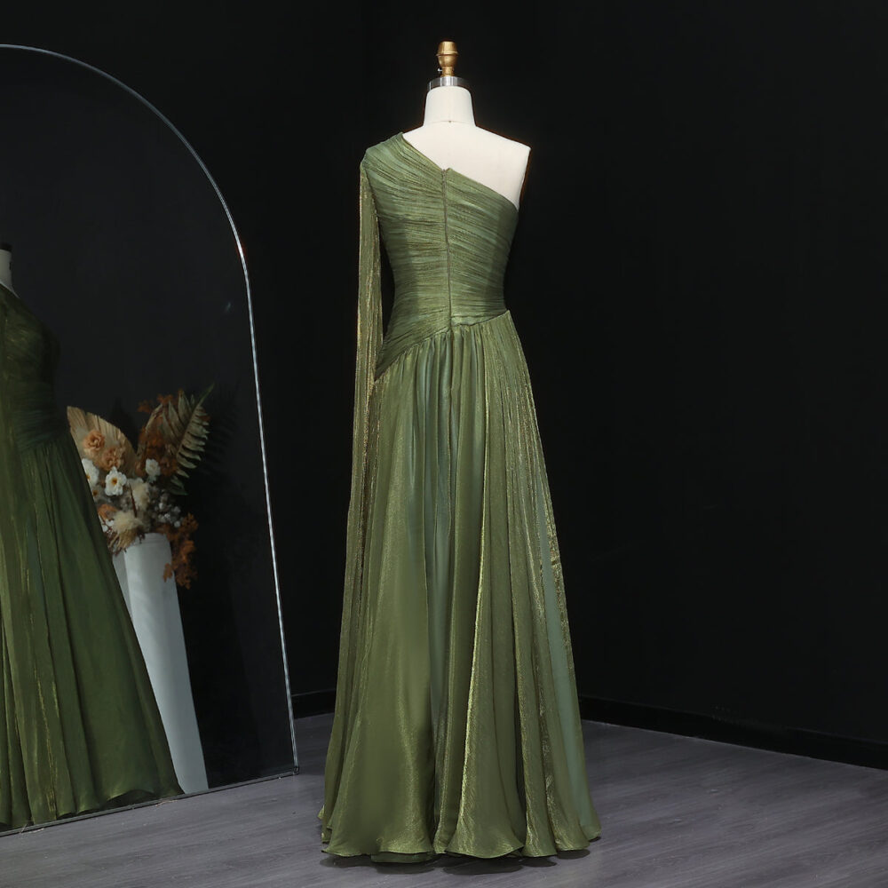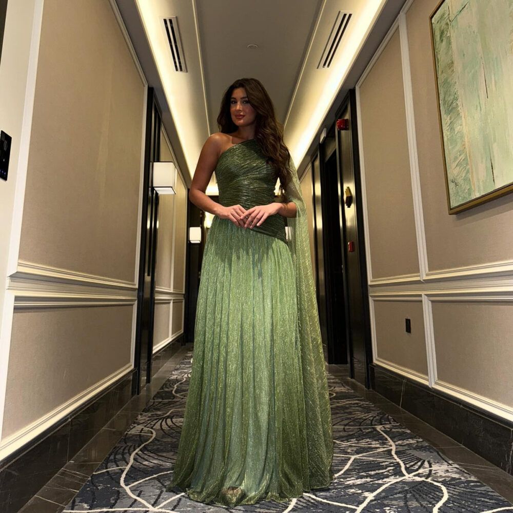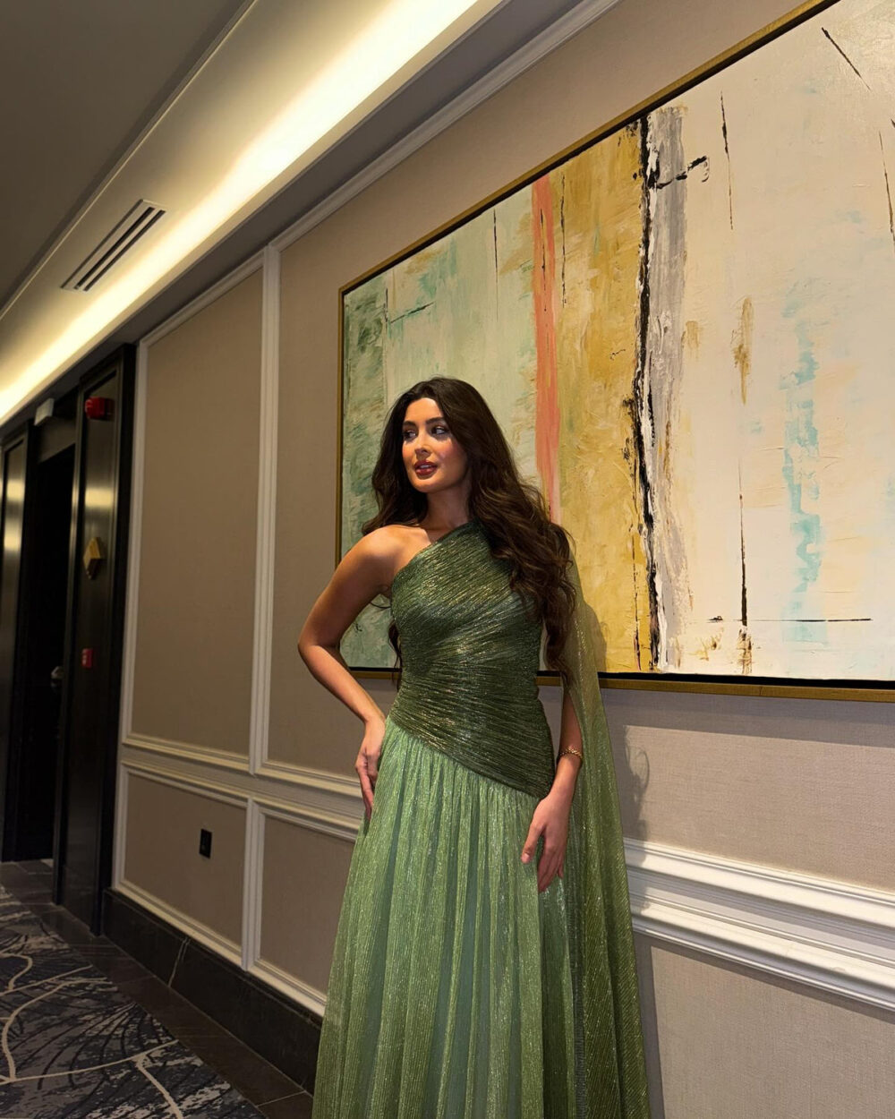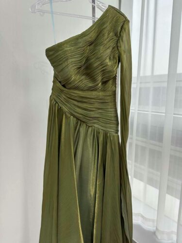 تميّزي بإطلالة أنثوية راقية مع هذا الفستان الأخضر الفاخر. يتميز بتصميم كتف واحد يبرز الأناقة والجاذبية، مع قصة A‑Line تنسدل بنعومة لتمنح حركة مريحة وانسيابية. مصنوع من خامة ناعمة بلمعة خفيفة تضيف بريقًا هادئًا، بينما يمنحك الخصر المحدد مظهراً أنثوياً متوازناً. خيار مثالي لحفلات المساء والمناسبات الرسمية.