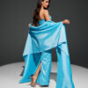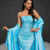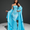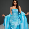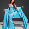 ✨ فستان سهرة أنيق باللون الأزرق السماوي الجذاب، مصمم بقصّة ضيقة تبرز جمال القوام الأنثوي.