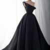 Be the first to review “فستان سهرة أسود فاخر – ساتان مرصّع بالكريستال وكتف واحد”