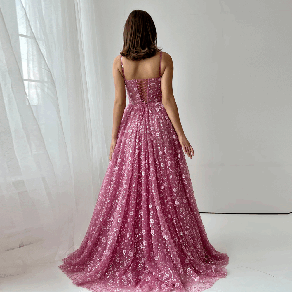 مصمم من قماش فاخر وتفاصيل ورود ثلاثية الأبعاد تمنحك إحساسًا بالأنوثة الملكية.