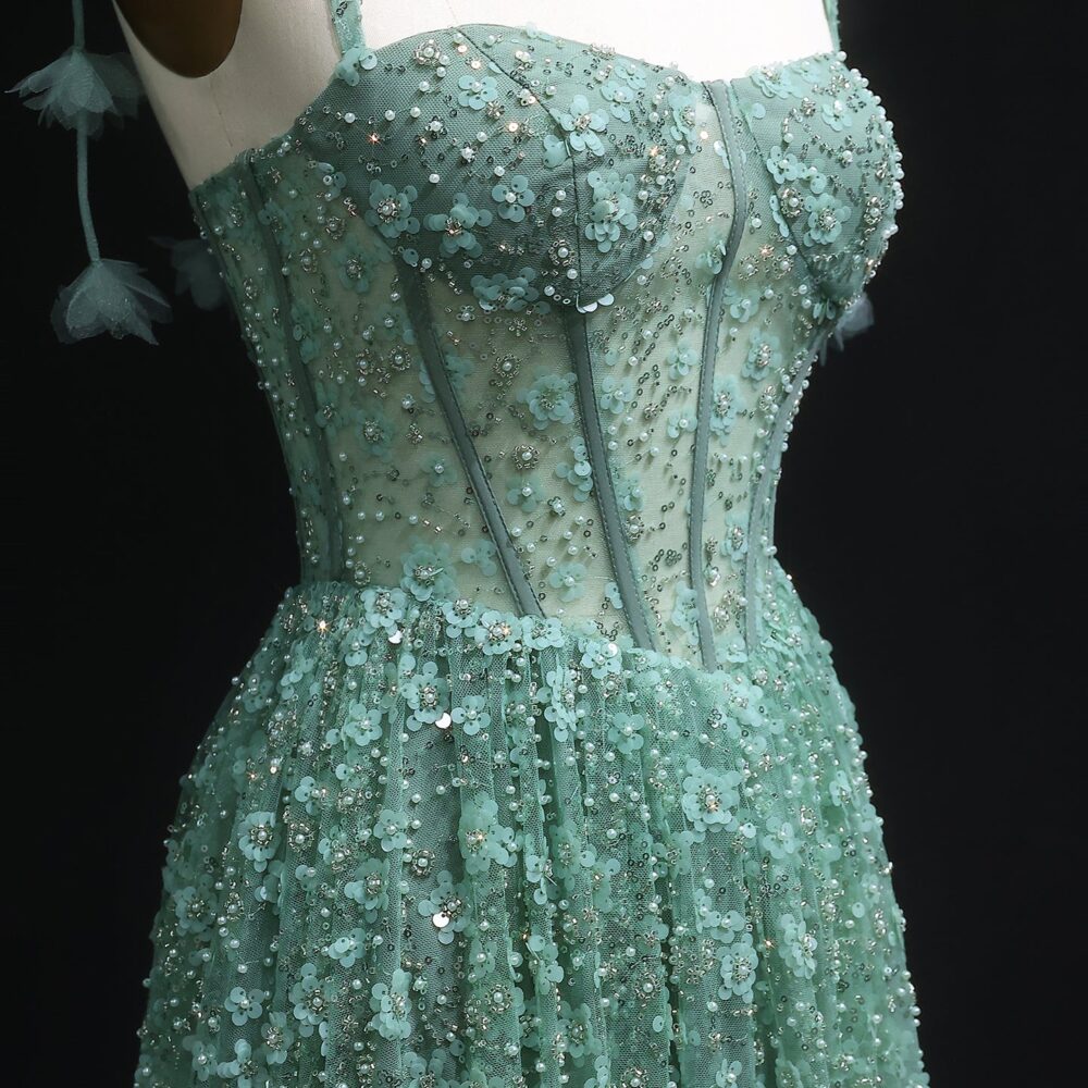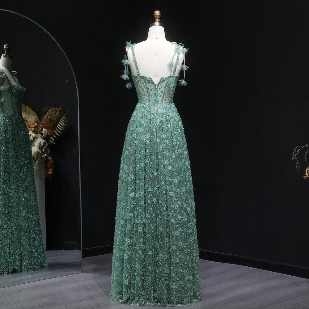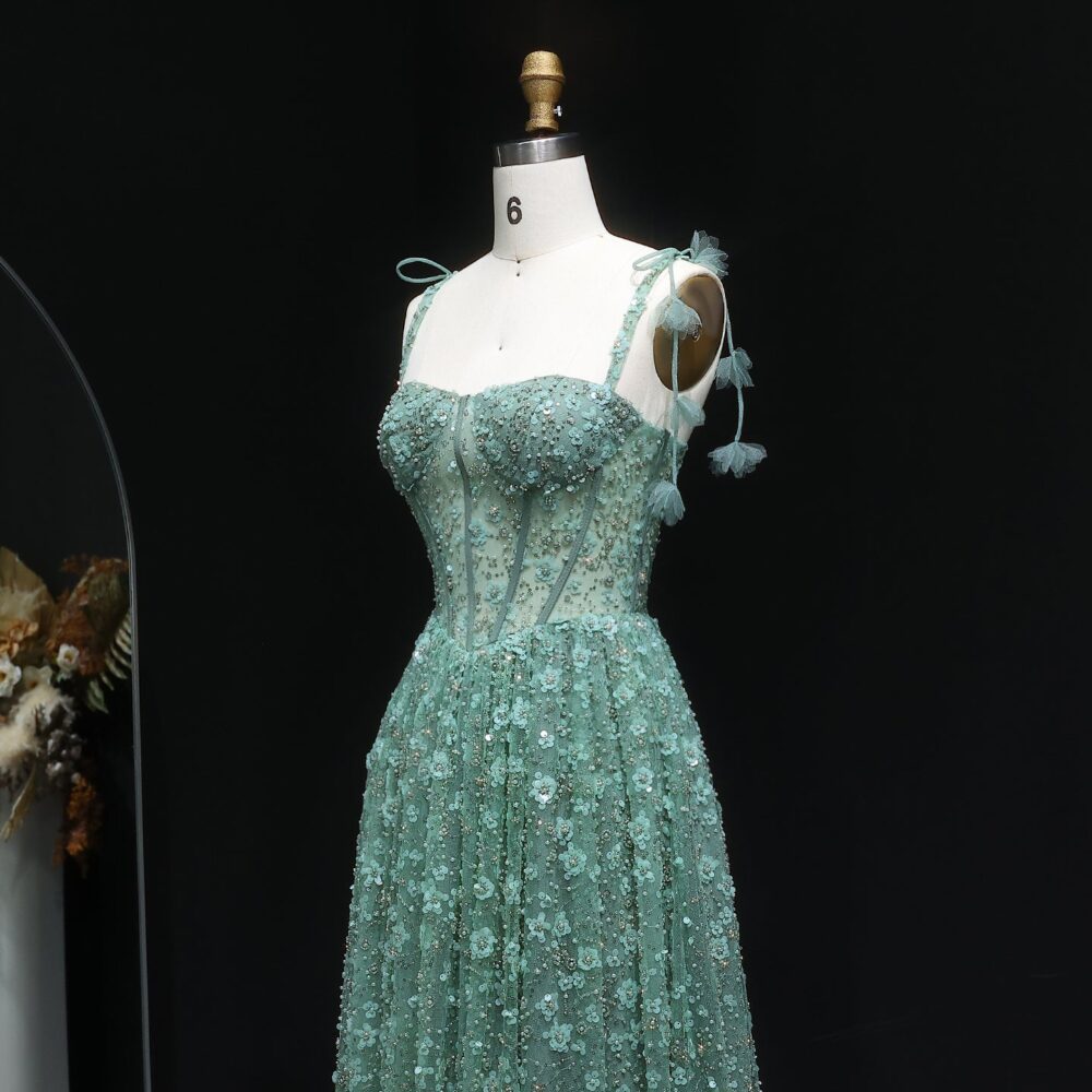 Be the first to review “. 💚 فستان سهرة أخضر بتطريز ورود ثلاثية الأبعاد – لمسة ملكية آسرة”